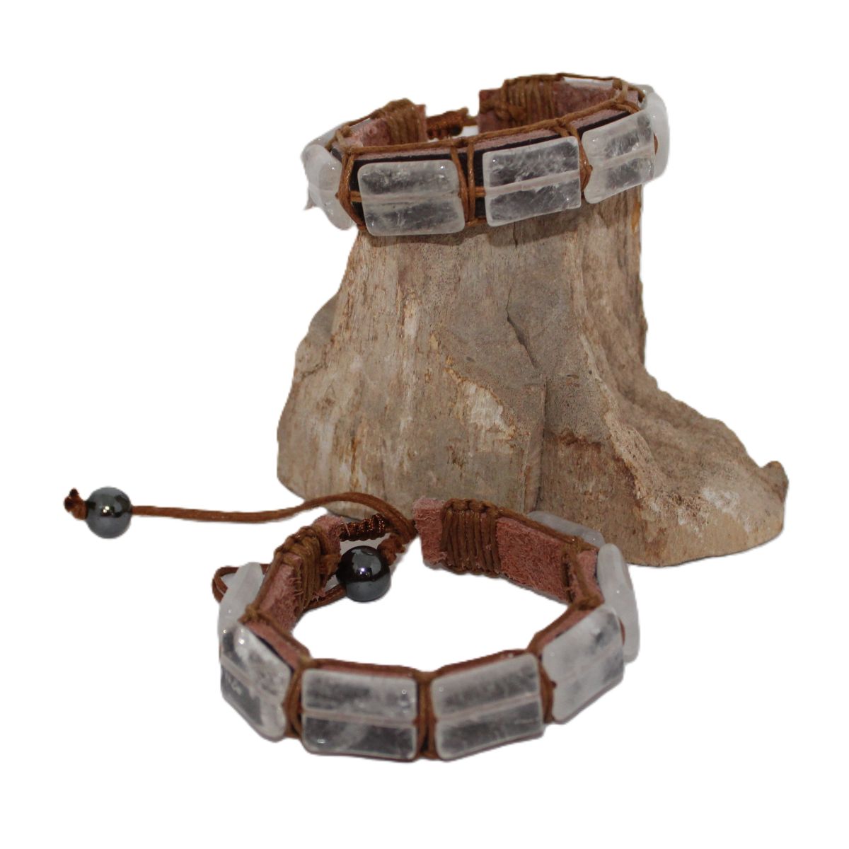 Bergkristal armband op Leer