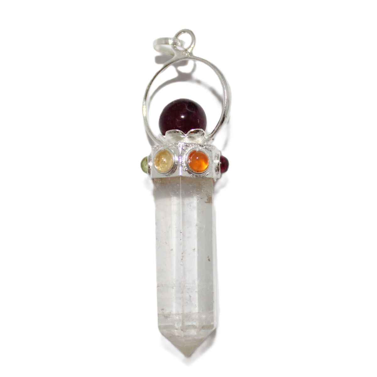Bergkristal hanger met chakra stenen en een Amethist bolletje.