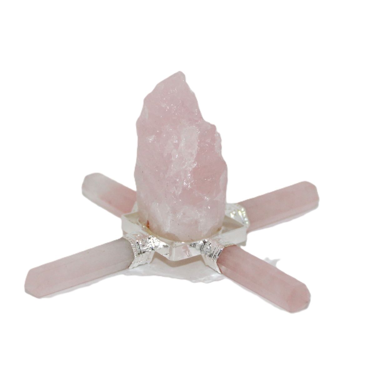 Deze generator is gemaakt van Rozenkwarts pendels met een Ruwe Rozenkwarts in het midden.