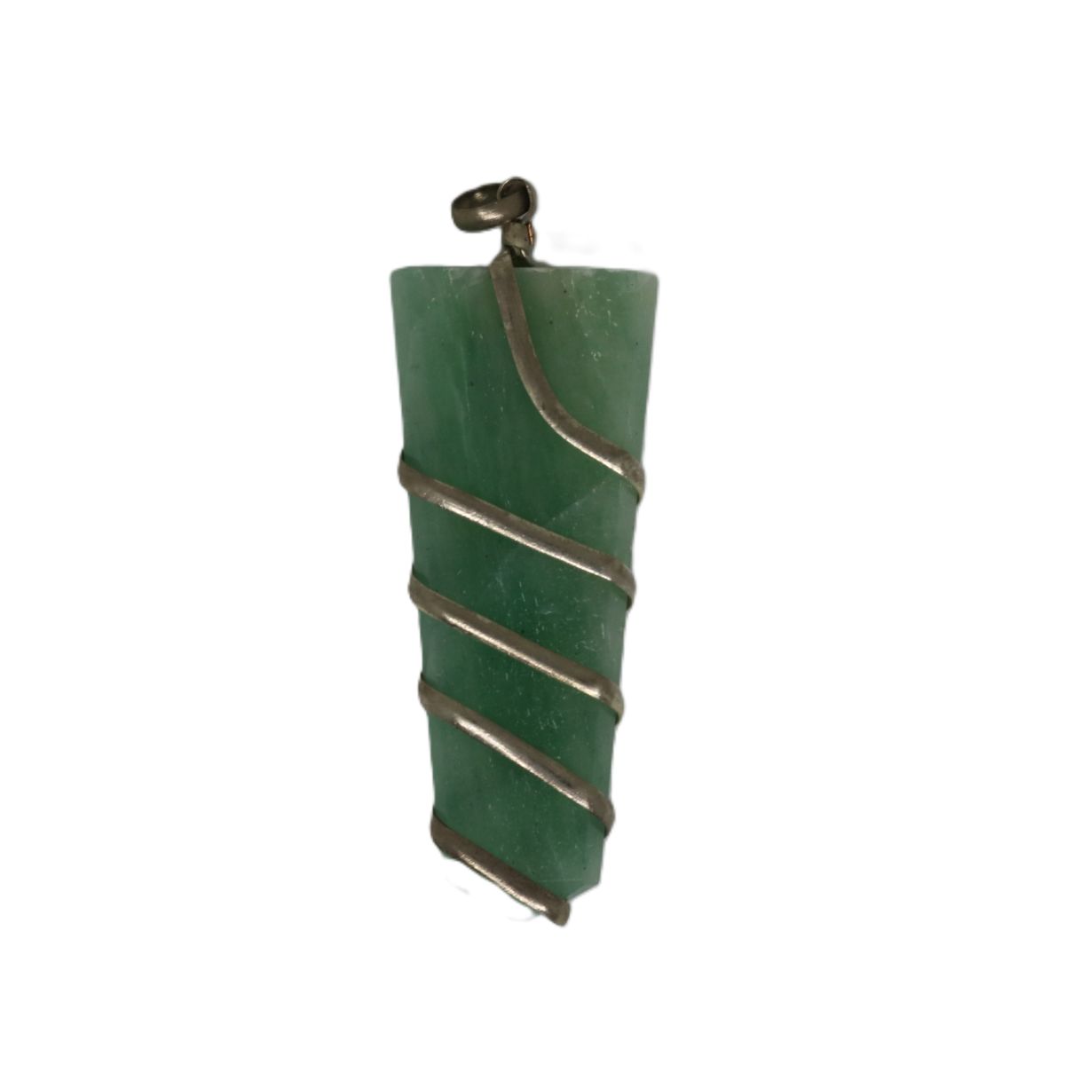 Groene Aventurijn hanger met Indiaas Zilver omweven van ongeveer 5 cm lang.