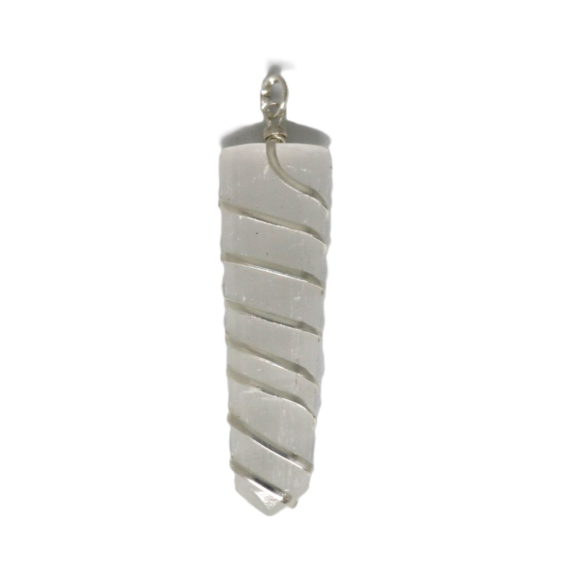 Seleniet hanger met Indiaas Zilver omweven van ongeveer 5 cm lang.