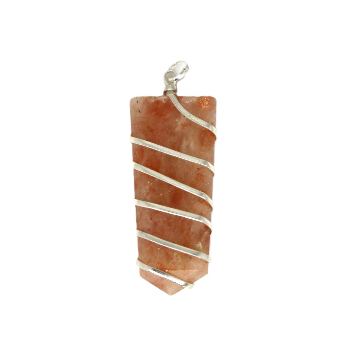 Zonnesteen hanger met Indiaas Zilver omweven van ongeveer 5 cm lang.