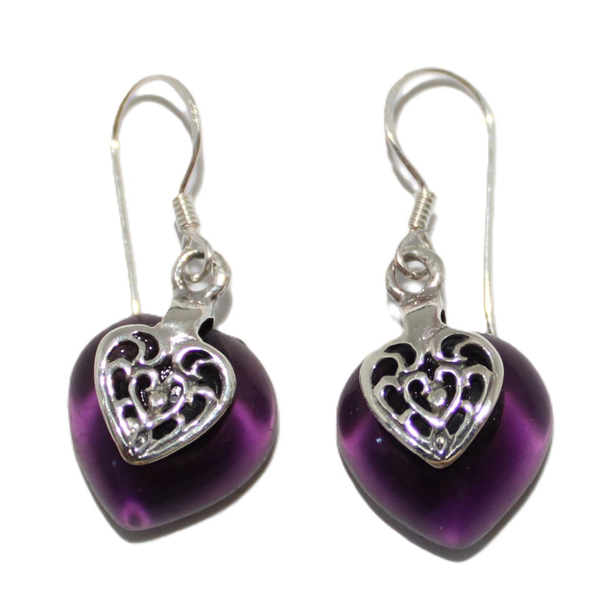 Hartvormige oorbellen van Amethist in 925 Zilver