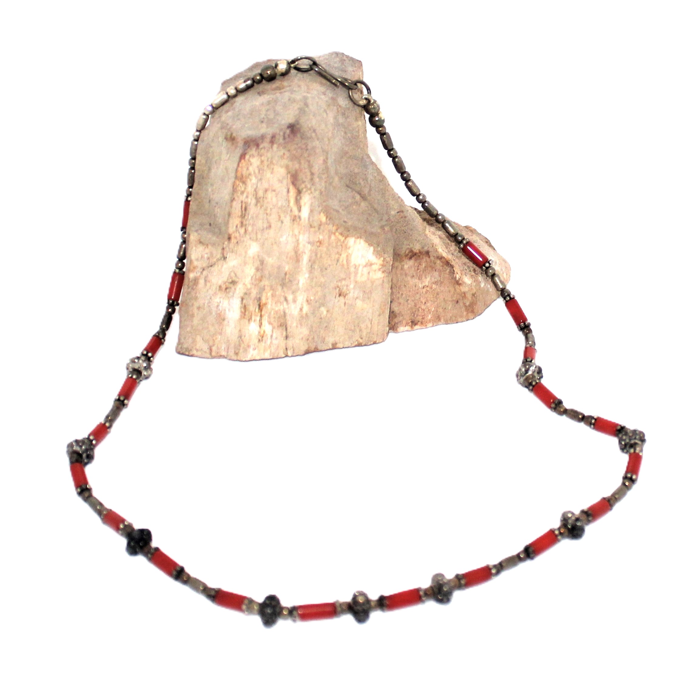 Ketting van Rode Jade en Zilver