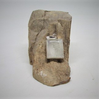 Witte maansteen hanger omvat in Indiaas zilver van ongeveer 2 x 2 cm.