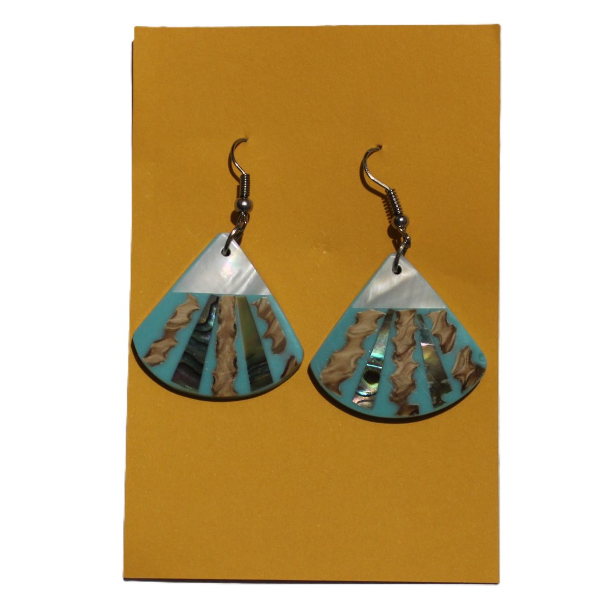 Zeer fraaie oorbellen uit de schelpen collectie en gemaakt met parelmoerschelp.