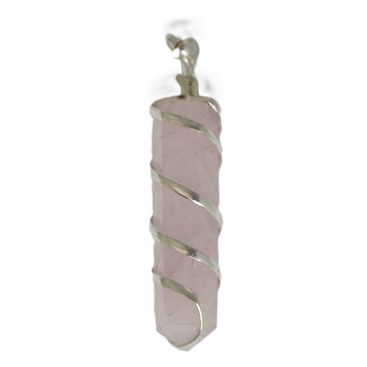 Rozenkwarts hanger met Indiaas Zilver omweven van ongeveer 4 cm lang.