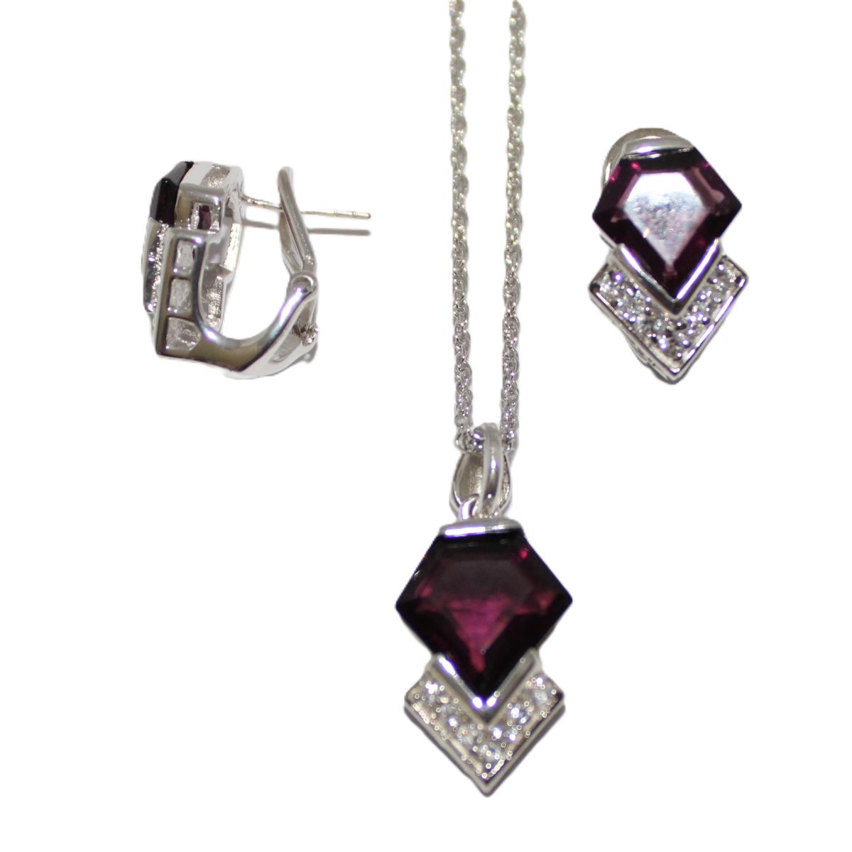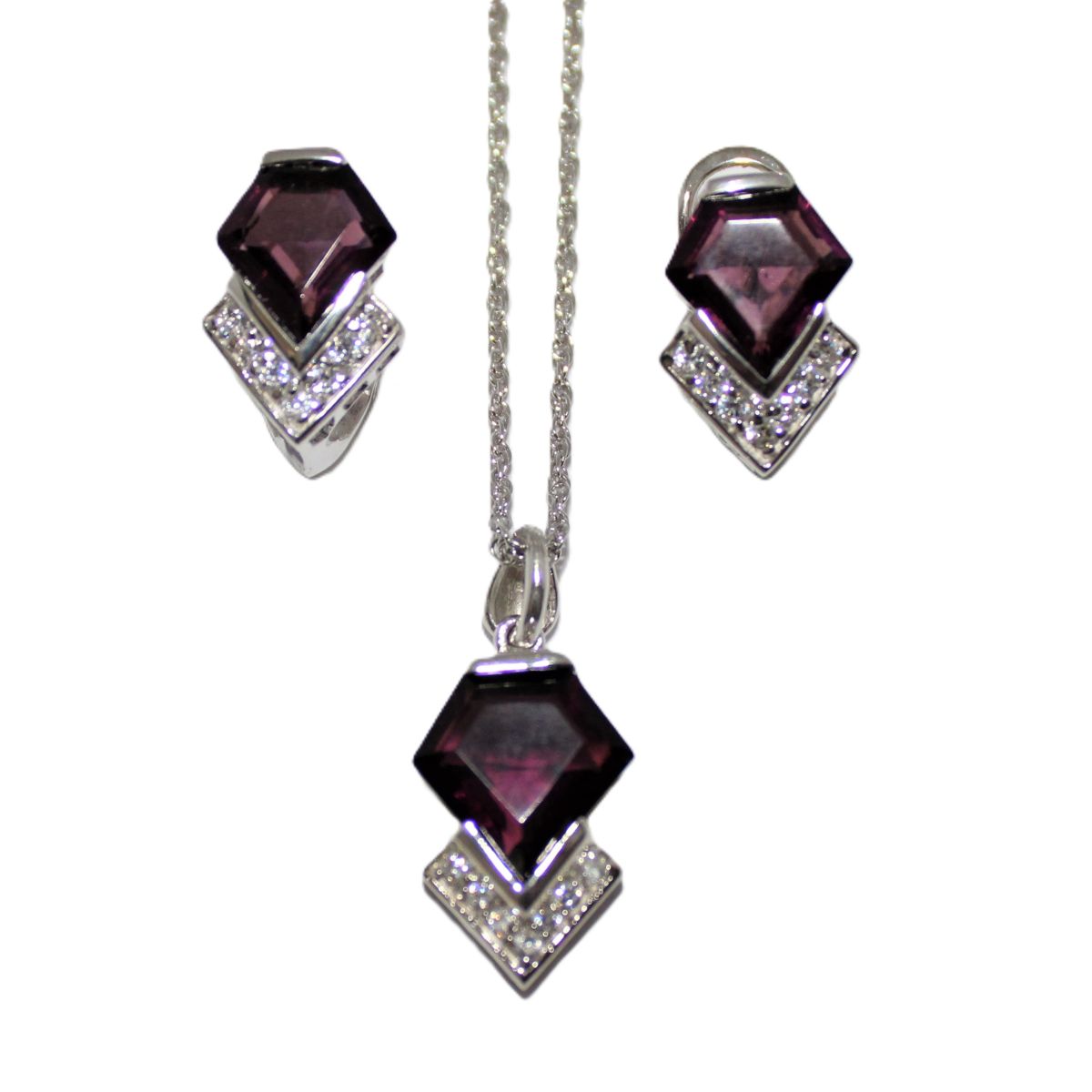 Sieraden set van 925 zilver met donkere Amethist